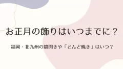 福岡県北九州のお正月飾りはいつまでに飾っていつまでに片付けるの?松の内や鏡開きやどんど焼きはいつ?地域差があるお正月行事の福岡・北九州の日程などをお届けします。